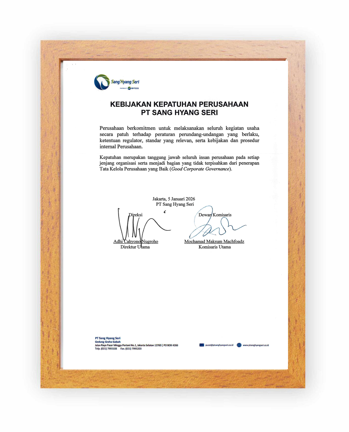 PT Sang Hyang Seri berkomitmen dalam menjalankan Kebijakan Kepatuhan